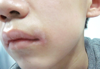 • 連燕平主任根據兒童白癜風的發病與治療特殊性,為其制定人性化的治療方案,選用兒童專屬治療并為其開出補充微量元素的食譜,經過兩個月療程的治療以后,有了明顯的效果,唇部以下的面積較大的白斑已經縮小,患病部位復色后的皮膚,與周圍皮膚無色差,隱性白斑也全部消失。